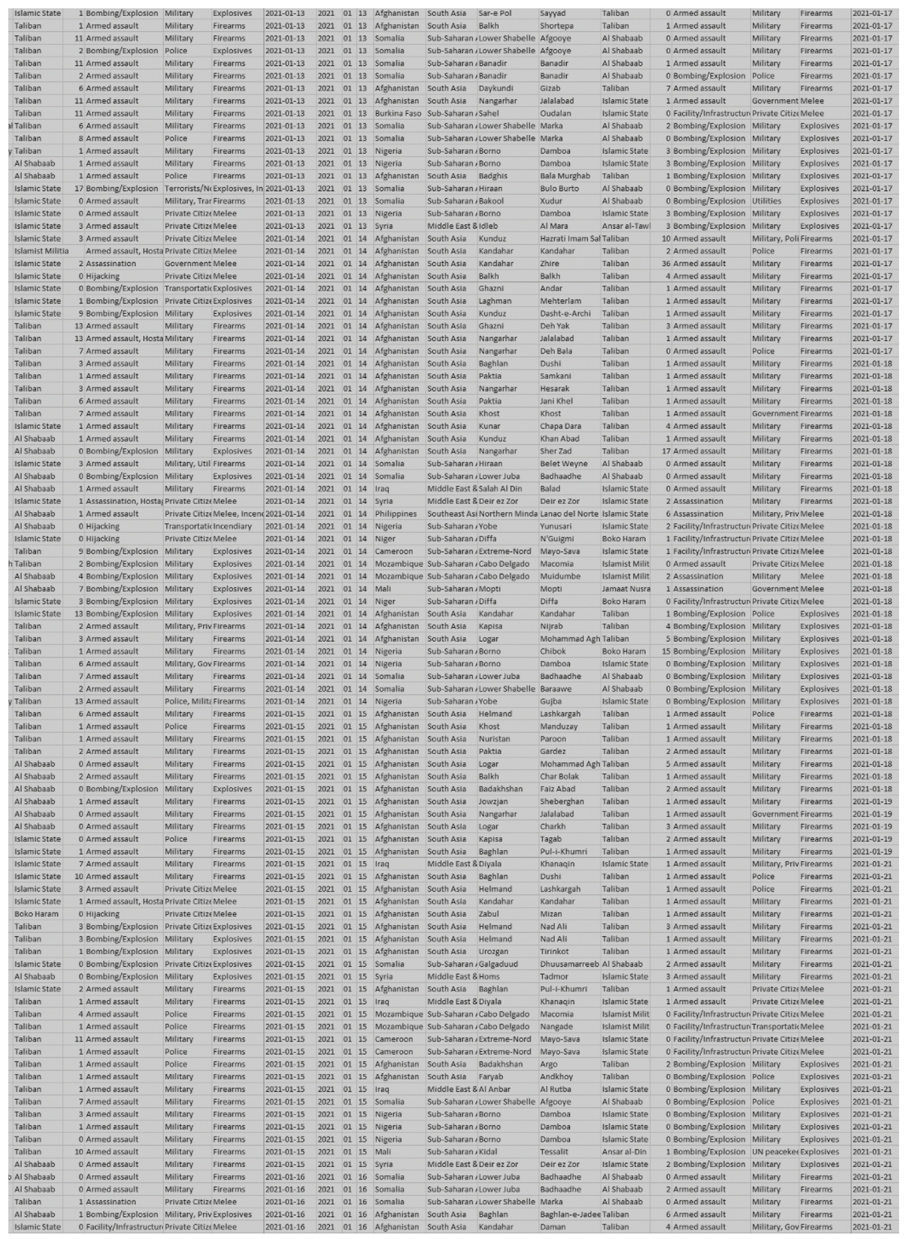 Une base de données mondiale des attentats islamistes de 1979 à mai 2021