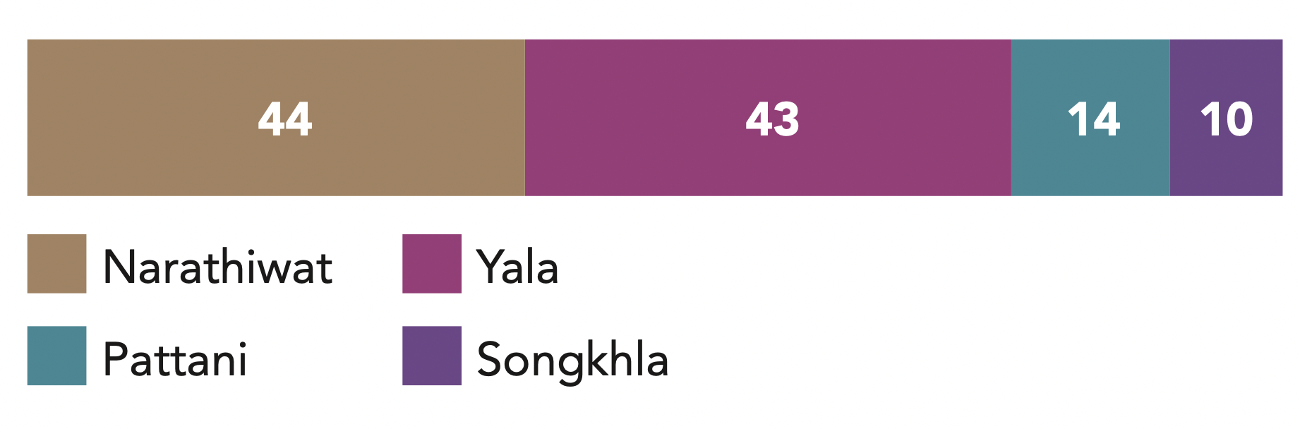 Nombre d’attentats par province en Thaïlande (2001-2012)