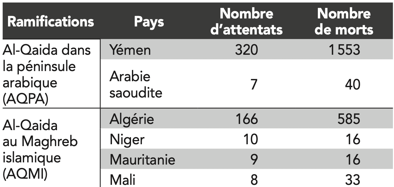 Les ramifications d’al-Qaida dans la péninsule arabique (AQPA) et d’al-Qaida au Maghreb islamique (AQMI) (2001-2012)