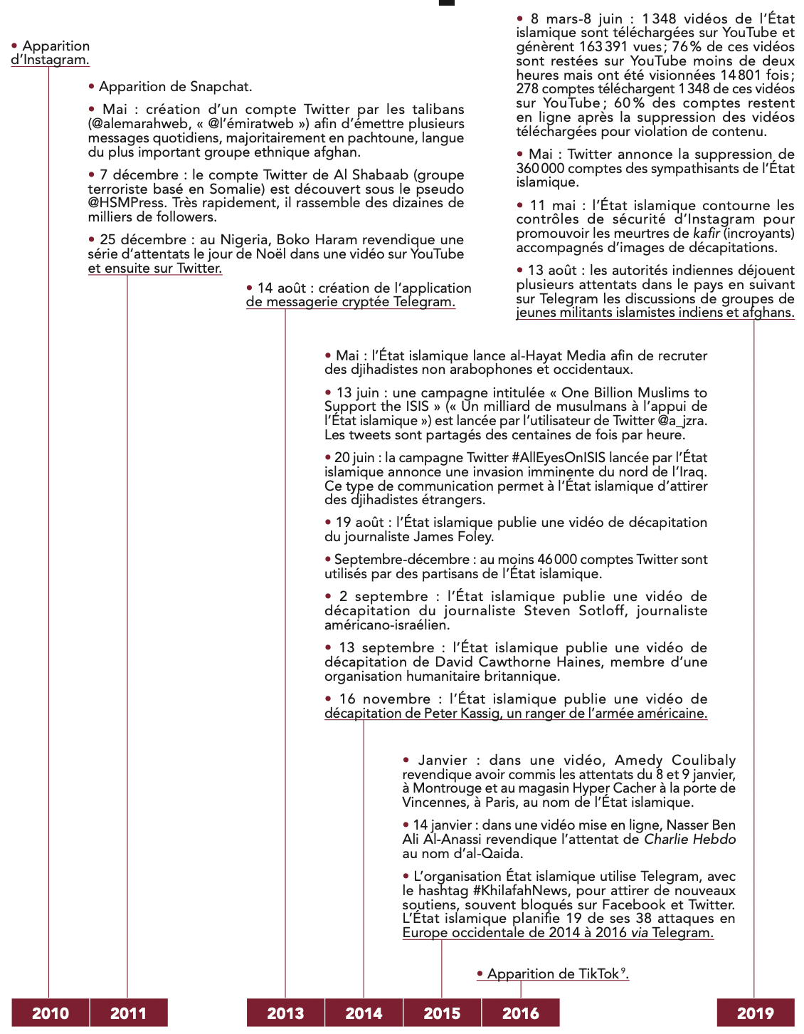 À partir du milieu des années 1990, l’accès à la visibilité prend des proportions inouïes. L’espace public numérique décuple l’impact des actions terroristes. L’interaction du Web avec les chaînes d’information continue amplifie les effets de la violence islamiste. Al Jazeera, la chaîne qatarienne lancée en 1996, émet dans une trentaine de pays et développe des sites d’information dans les quelques langues qui permettent de s’adresser à la plupart des habitants de la planète. Réseaux sociaux et autres applications de messagerie sécurisée offrent aux plus modestes des groupuscules terroristes les outils d’une action planétaire : communication, propagande, organisation, recrutement… Le smartphone déploie jusqu’au bout de la chaîne, c’est-à-dire l’individu, la maîtrise de ces outils surpuissants et l’accès à tous les réseaux. La couverture médiatique des attentats passe toujours par les médias traditionnels (agences, télévisions, radios et presse) mais elle ne dépend plus d’eux. Dans l’espace public universel, la production de l’information est absolument disséminée. Le Web et le smartphone donnent à la multitude humaine les pouvoirs d’une agence de presse aux 2,8 milliards de correspondants et les capacités d’influence d’autant de médias. Le terrorisme islamique prospère à l’ère de l’individu-média. L’épaisseur du réseau, la force des images, le jeu des algorithmes font que tout attentat peut devenir en quelques minutes un événement planétaire.