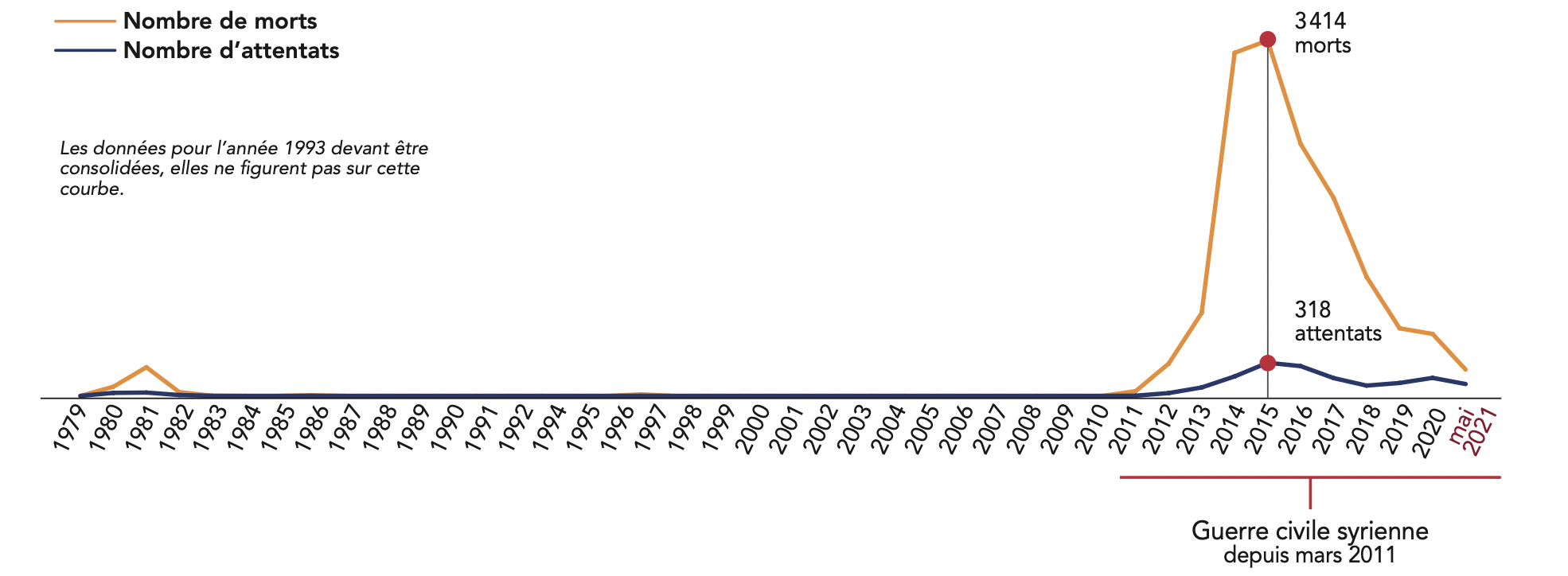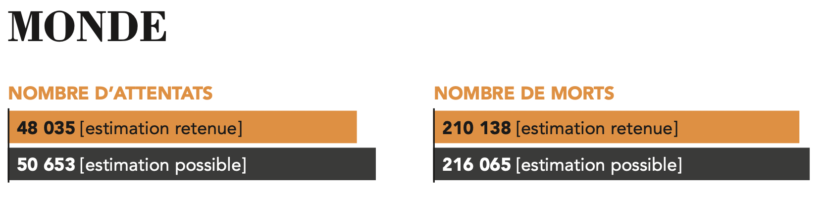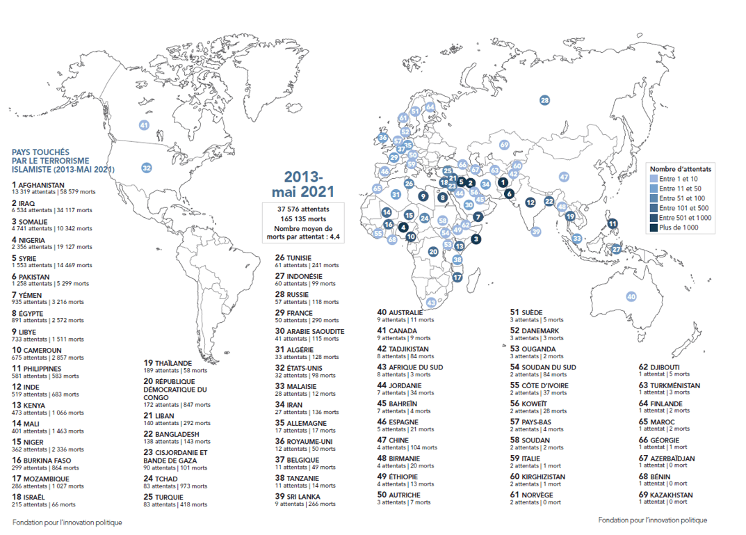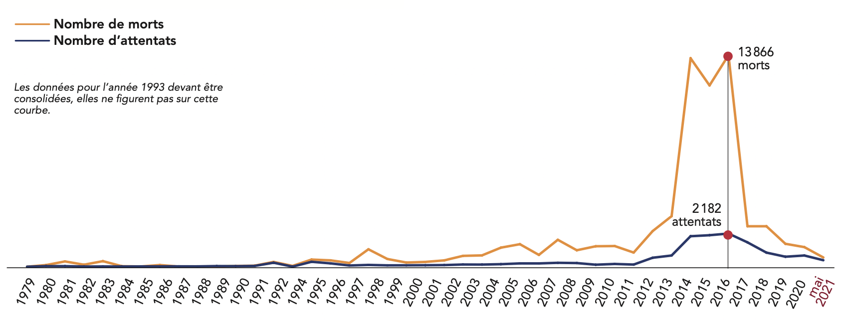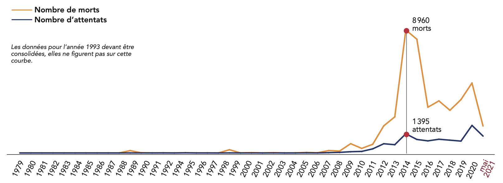 • 2013-mai 2021 : 37.576 attentats et 165.135 morts.