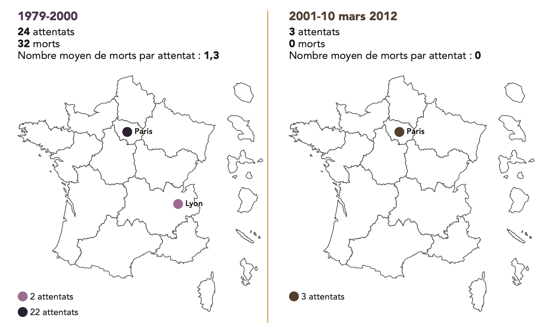 • 2001-2012 : un attentat a tué en moyenne 4,6 personnes.