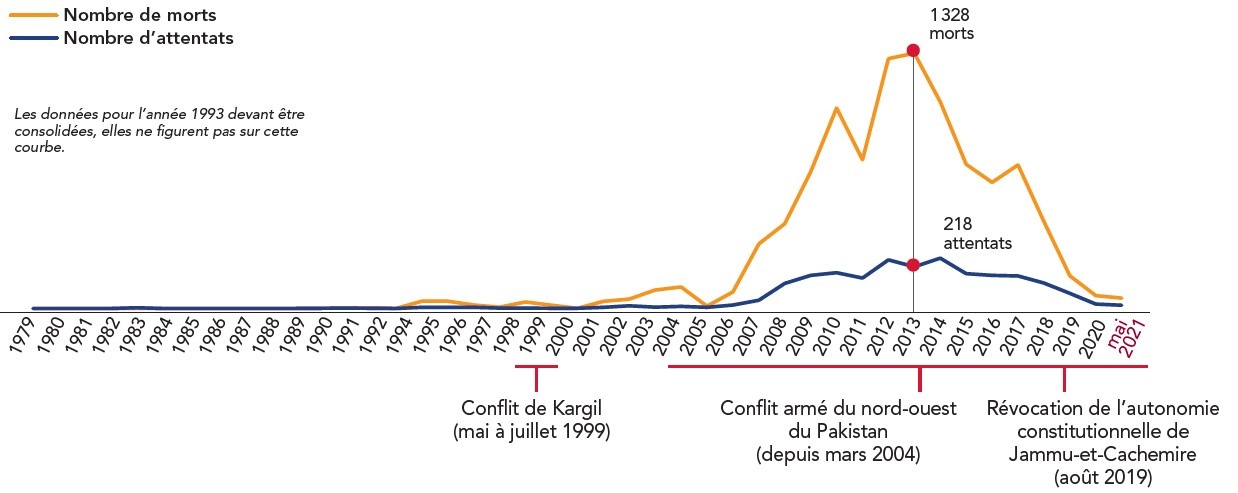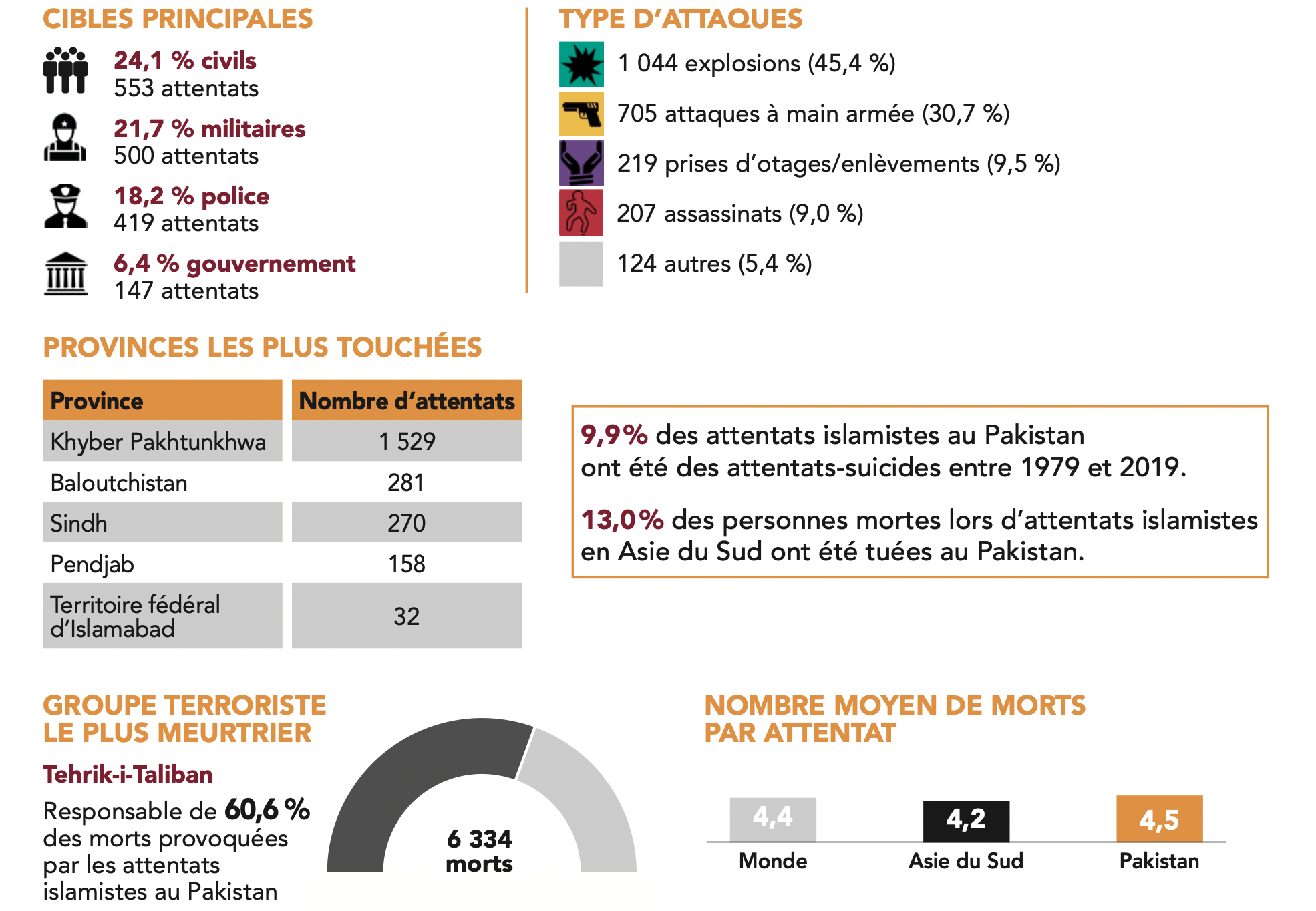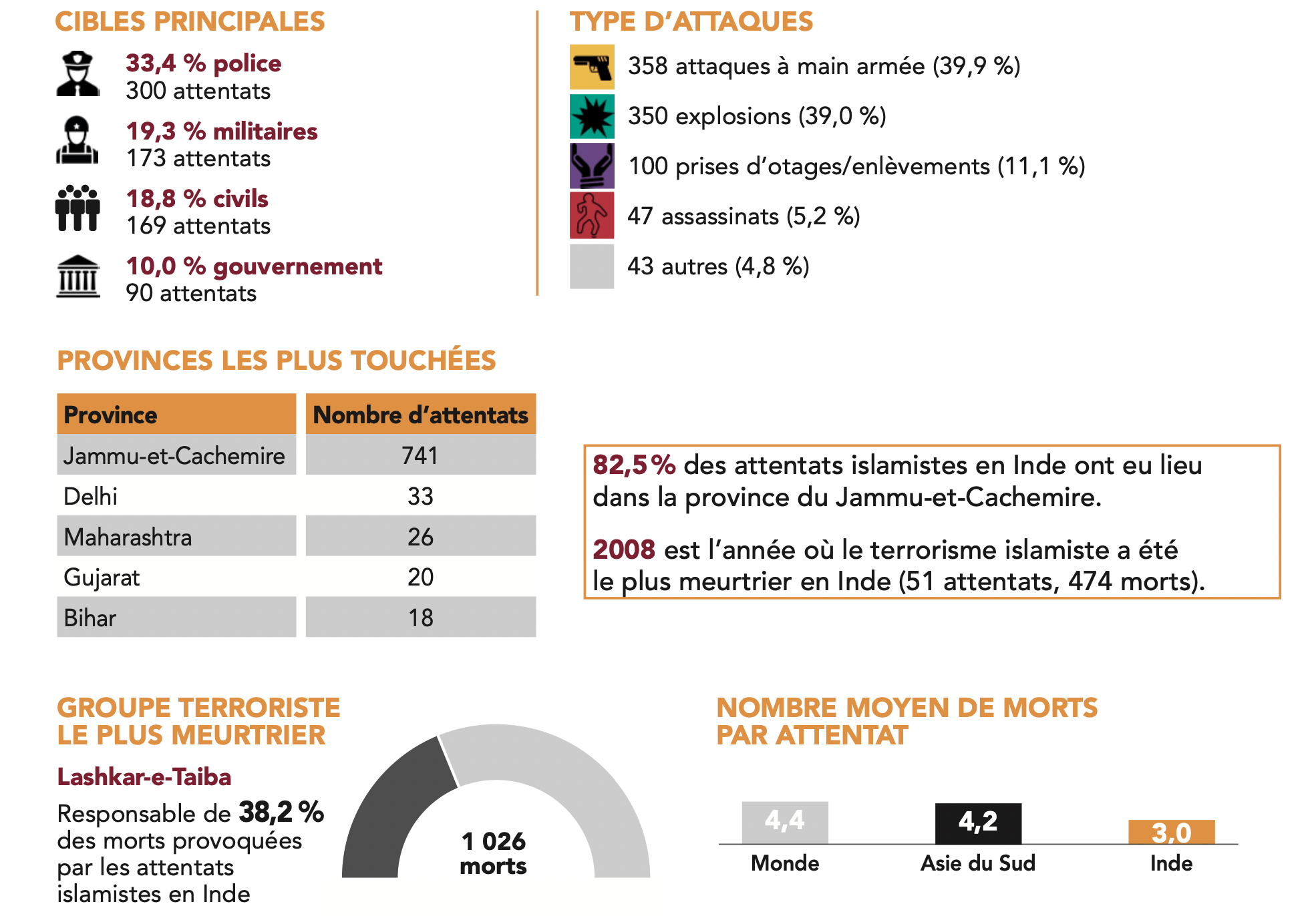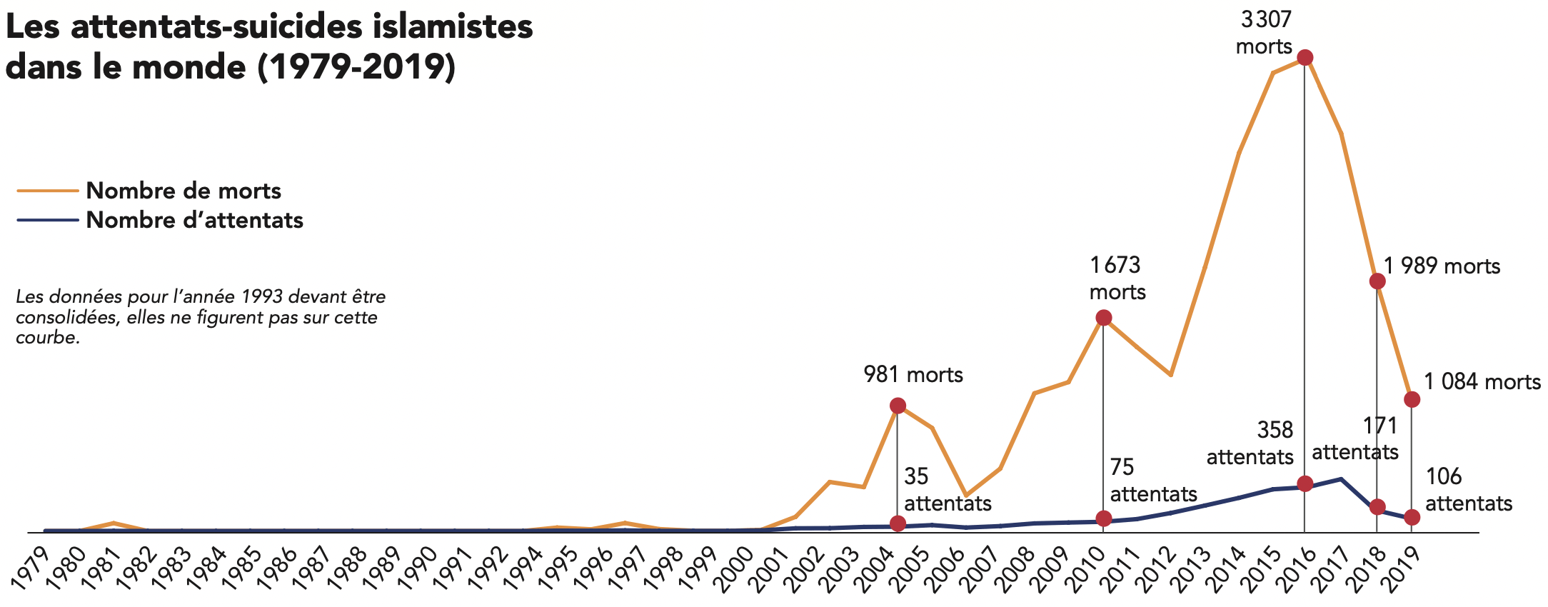 Notons que ces chiffres sous-estiment la réalité puisqu’ils ne prennent pas en compte les attentats islamistes perpétrés dans des pays à majorité non musulmane où des populations musulmanes sont concentrées dans certaines provinces. C’est, par exemple, le cas du sud de la Thaïlande où les musulmans sont majoritaires dans les provinces de Satun, Yala, Pattani et Narathiwat, mais aussi aux Philippines, 1dans la région de Mindanao ; en Inde, dans la province de Jammu-et-Cachemire ; ou encore en Chine, dans la région autonome ouïgour du Xinjiang.