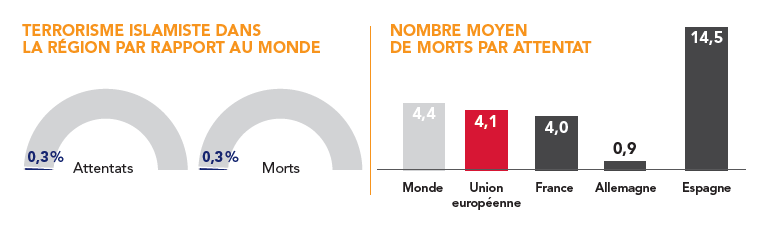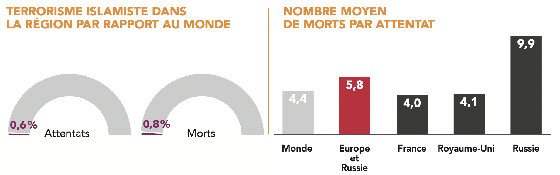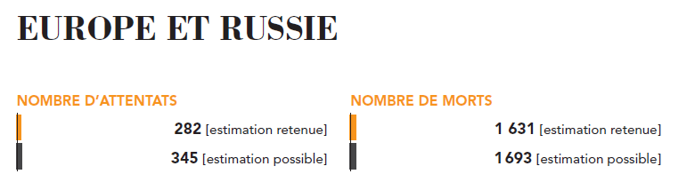 • Europe : 0,6% des attentats, 0,8% des morts.