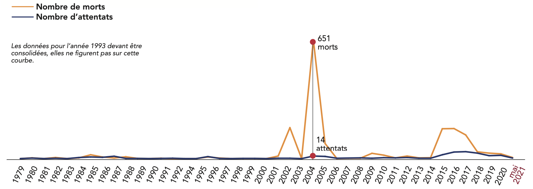 • 1979-2000 : un attentat a tué en moyenne 3,1 personnes.