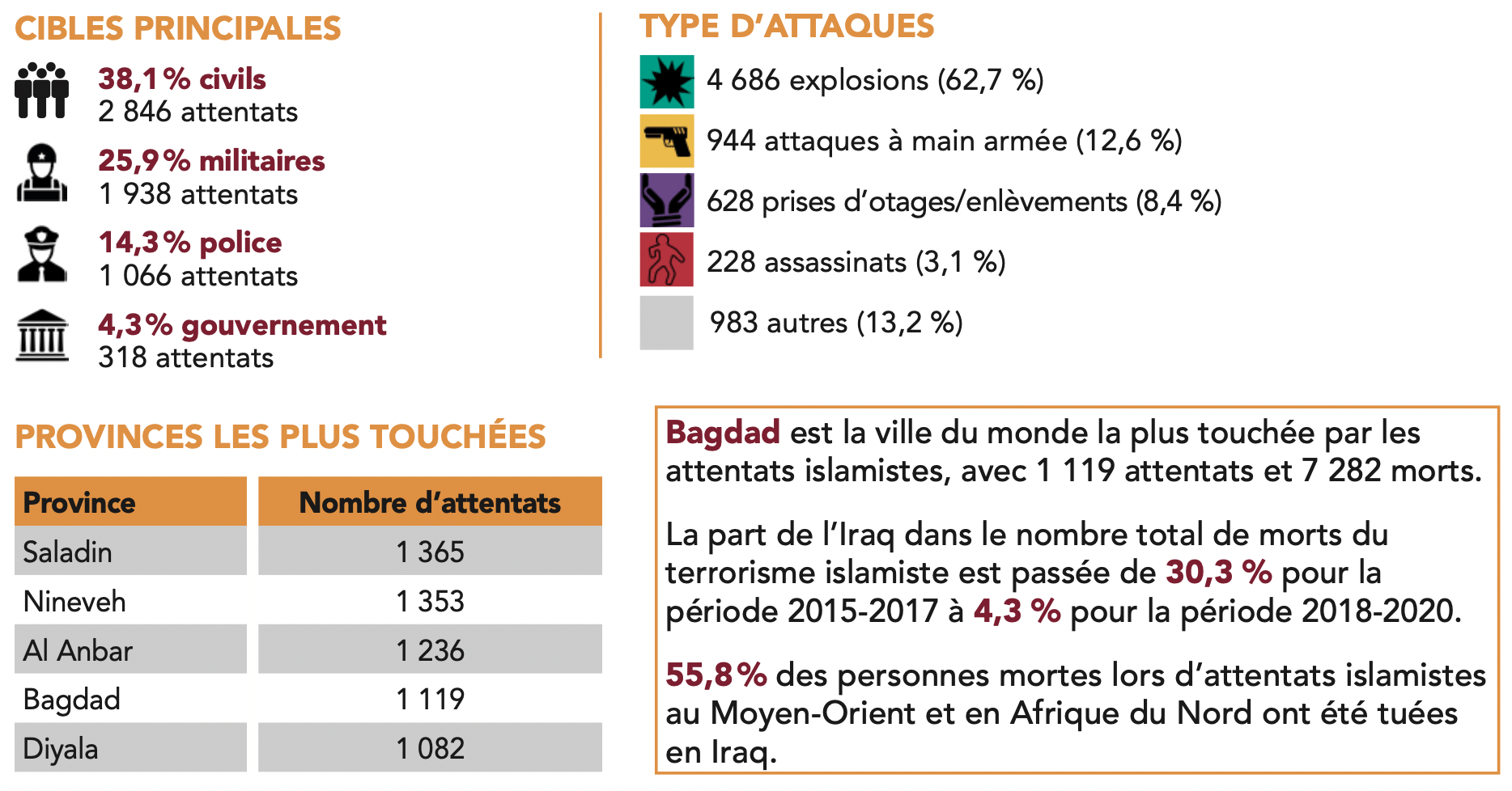 Cibles de l’organisation État islamique en Iraq (2013-mai 2021)