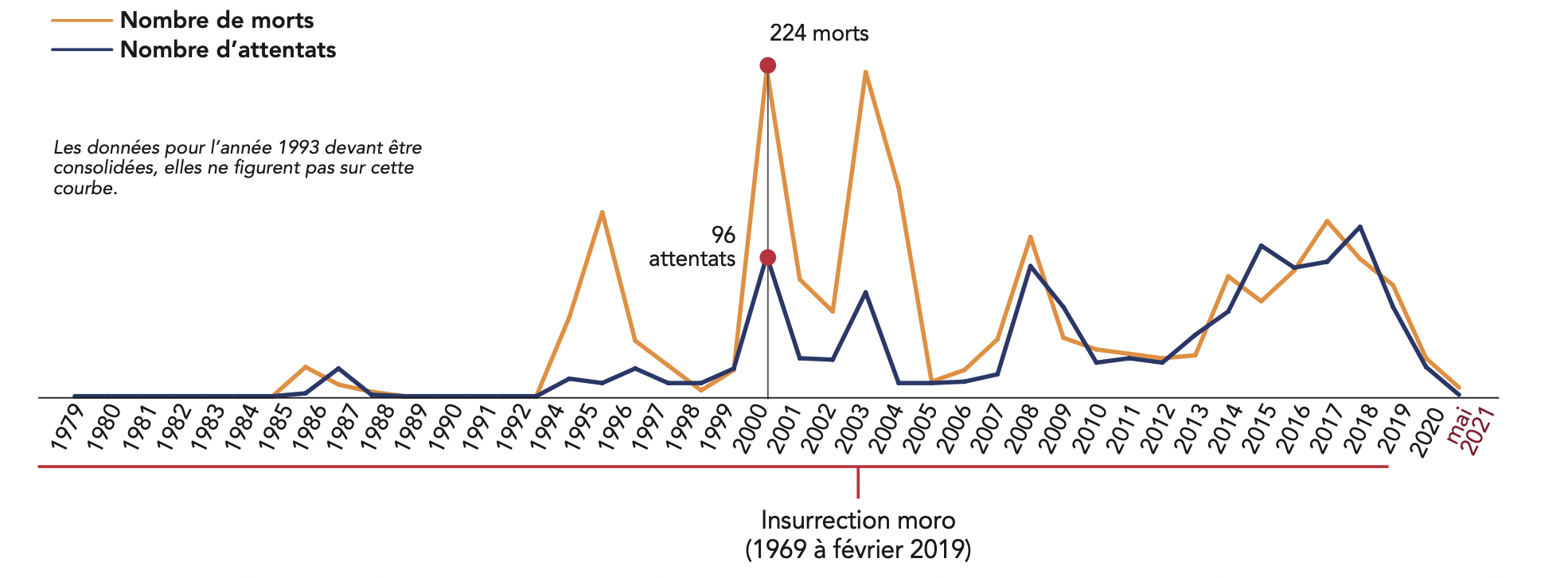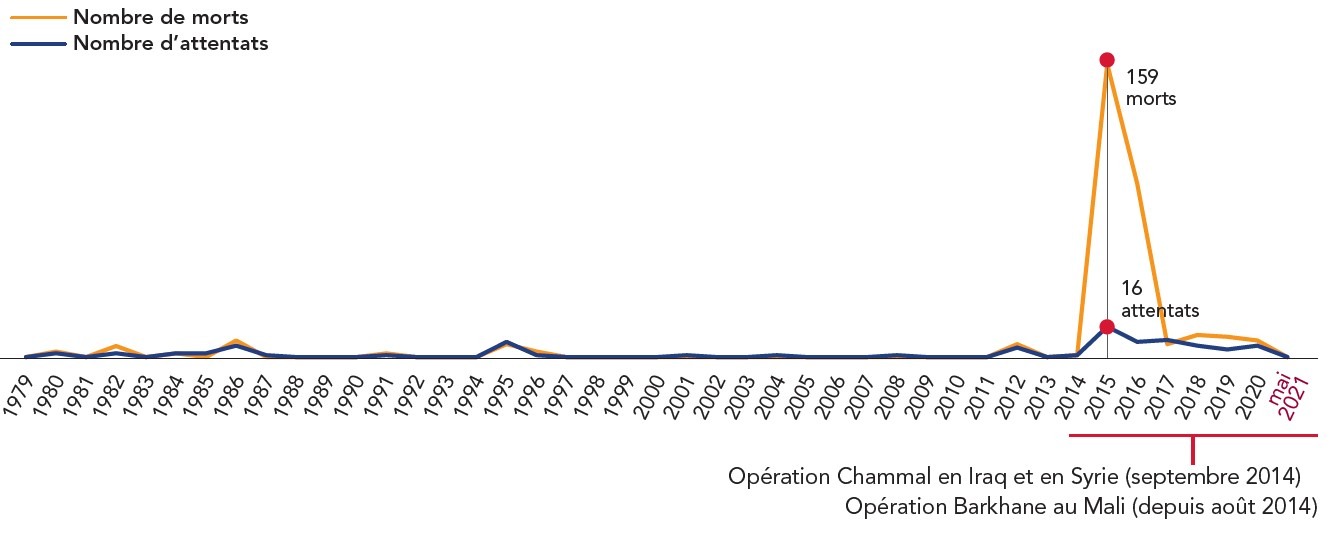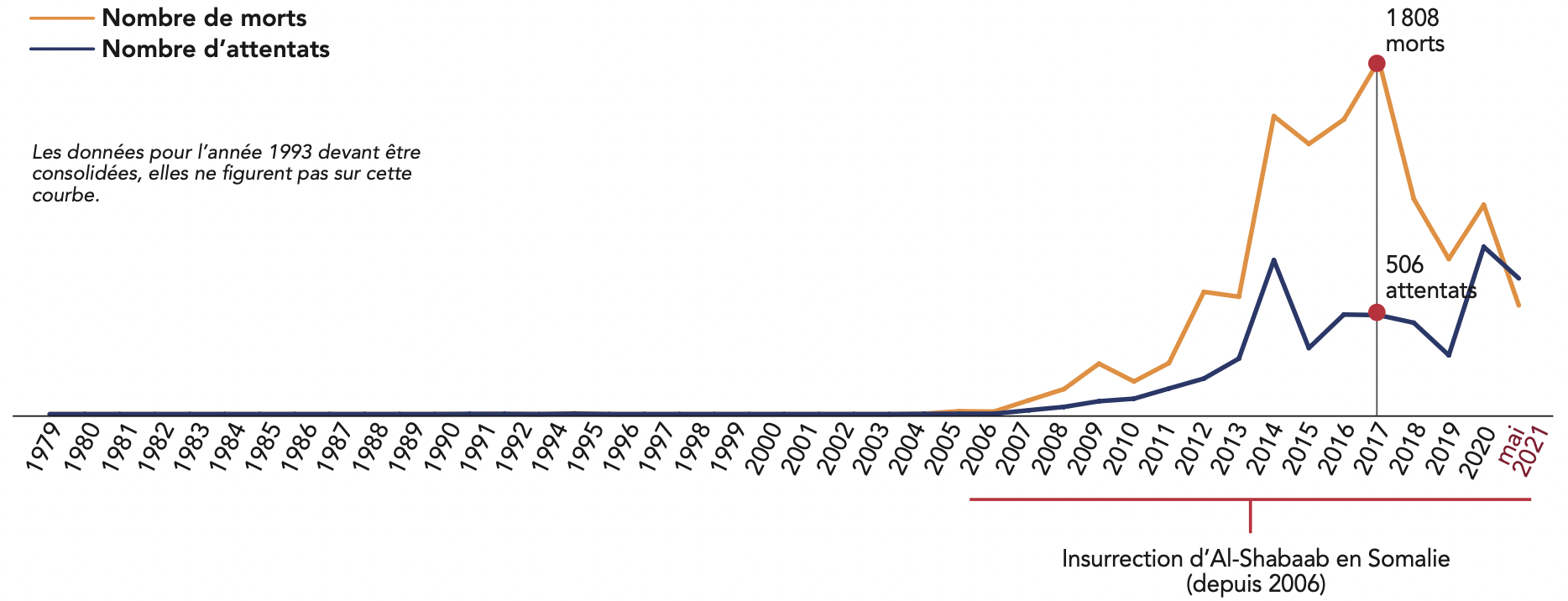 • 2013-mai 2021 : 50 attentats, 290 morts.