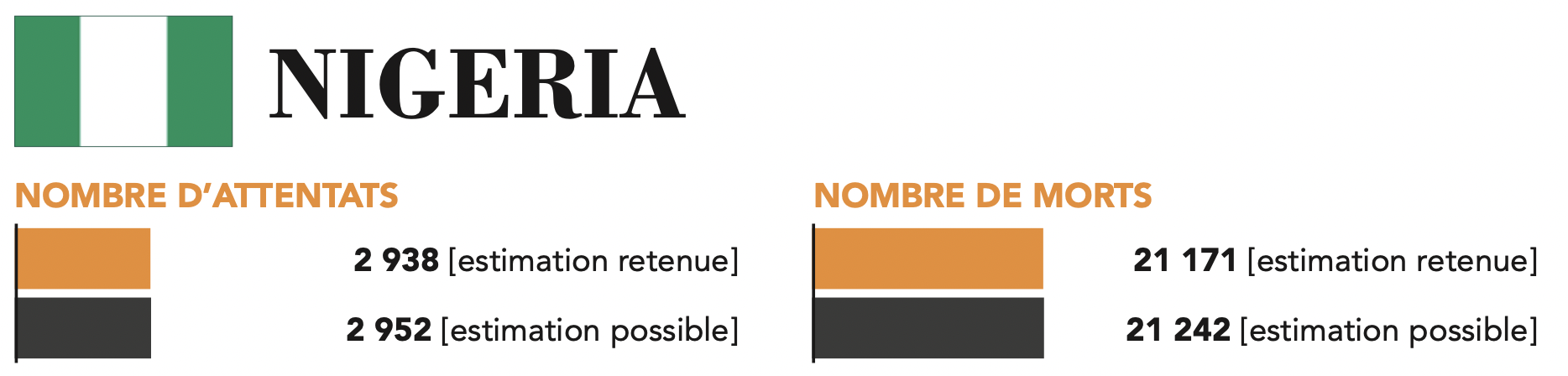 Dans ces douze pays, on enregistre 187.284 morts provoquées par les attentats islamistes, ce qui représente 89,1% du total des morts recensées dans le monde.