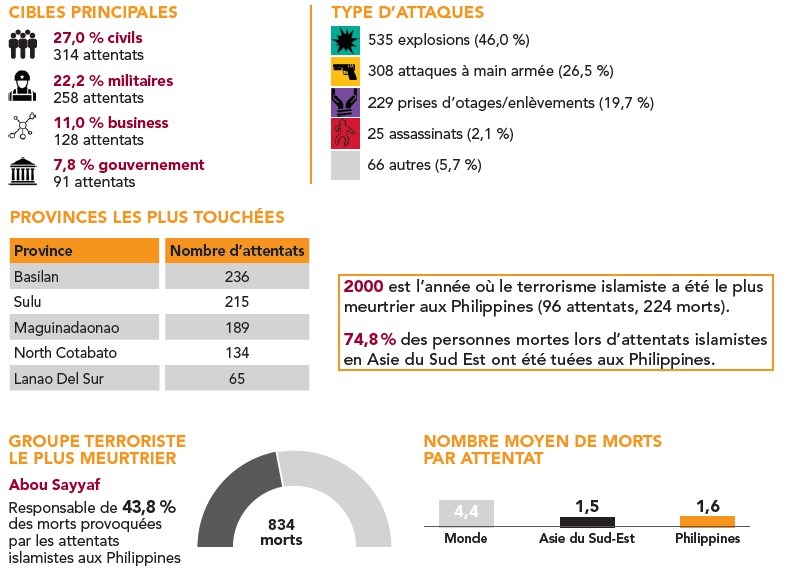• Asie du Sud-Est : 3,5% des attentats, 1,2% des morts.