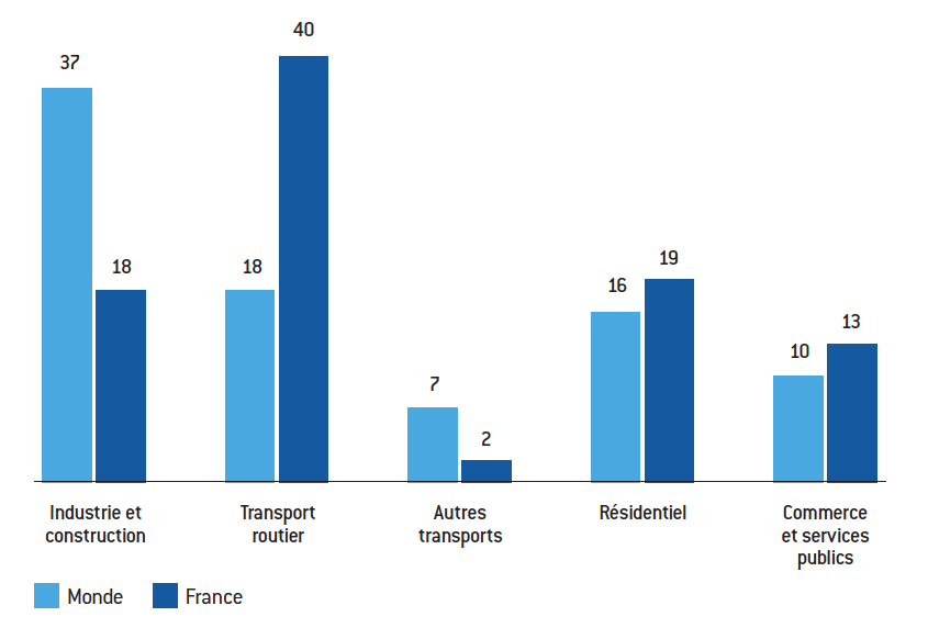 Graphique 4 : Part des différents secteurs dans les émissions totales de CO2 en 2017 (en %)