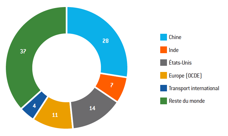 Graphique 2 : Répartition des émissions mondiales de CO2 en 2017 (en %)