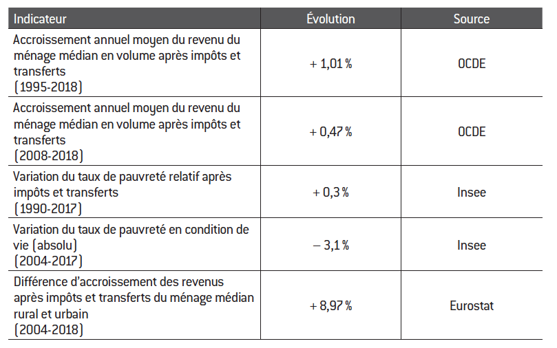 Tableau 1 : Évolution du niveau de vie et de la pauvreté en France