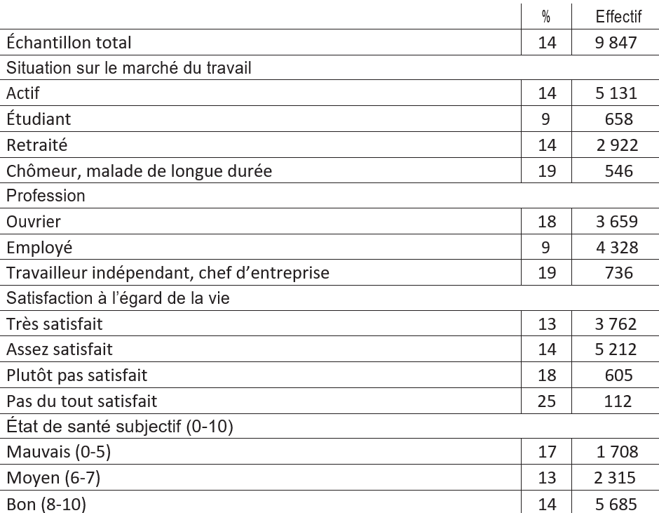 Tableau 2 : Le soutien aux Démocrates de Suède en 2017 selon la situation en termes d’emploi, de satisfaction dans la vie et de santé.