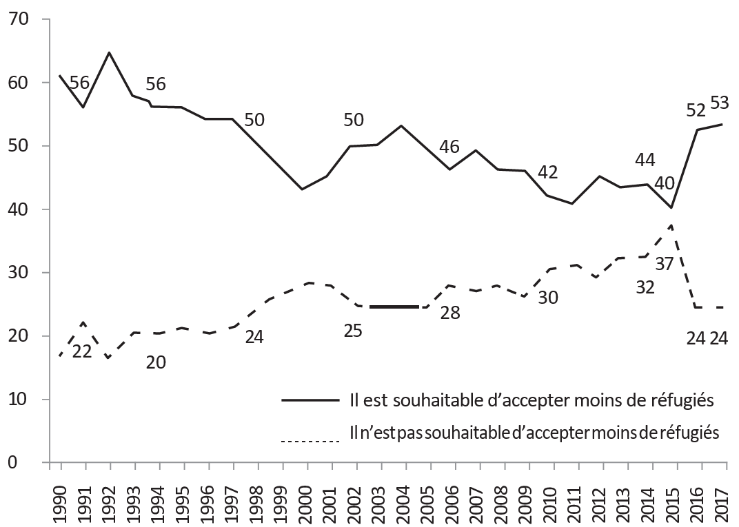 Graphique 3 : L’opinion publique et l’accueil des réfugiés (1990-2017, en %)