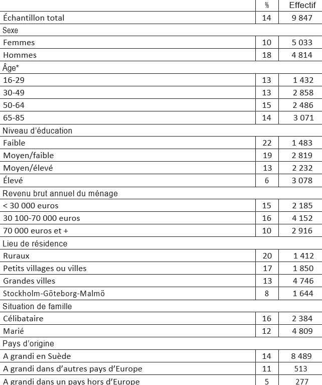 * Absence d’écart significatif entre les différentes catégories d’âge (niveau de confiance de 95 %). Enquête nationale du SOM-Institutet 2017.