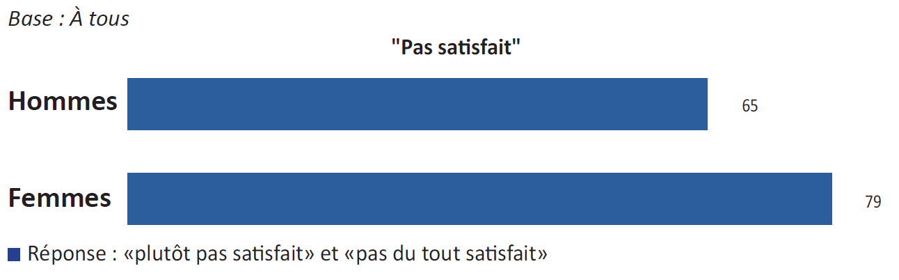 Notre étude montre que l’insatisfaction vis-à-vis du fonctionnement du système de retraite est sensiblement plus forte chez les femmes (79%) que chez les hommes (65%). Les deux tiers des répondantes (65%) se disent mal informées (contre 53% chez les hommes).