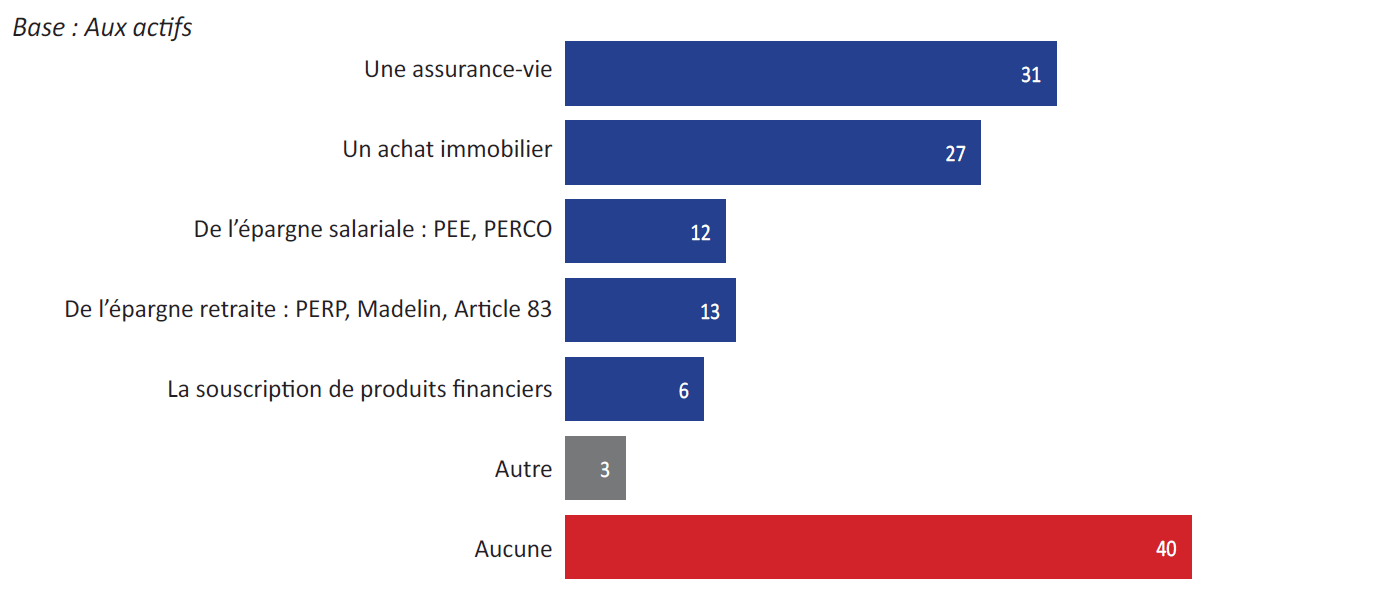 Une proportion significative des actifs s’en remet entièrement au système de retraite existant. Ainsi, moins d’un tiers (31%) disent avoir souscrit une assurance-vie et 40% n’avoir pris aucune disposition financière pour préparer leur retraite.