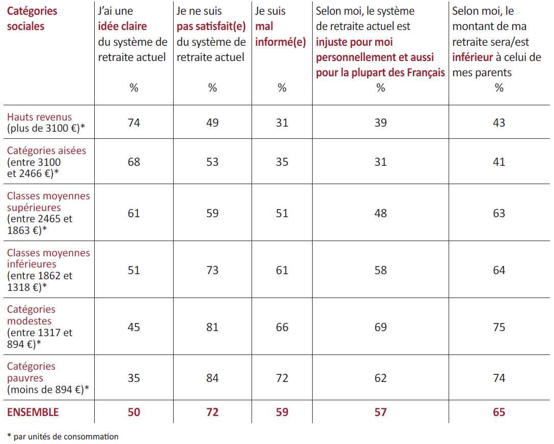 Niveau de revenus, classe sociale et jugement sur les retraites