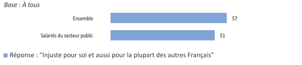 Le fonctionnement du système de retraite n’est pas compris ou mal perçu. Il n’est pas clair pour une majorité des actifs (56%) et cette proportion dépasse les deuxtiers (68%) parmi les chômeurs. Conséquemment, plus des trois quarts des actifs (76%) ne sont pas satisfaits du système actuel de retraite. Le niveau d’insatisfaction atteint 80% chez les jeunes (18-34 ans) et il est majoritaire parmi les retraités eux-mêmes (55%). Près des trois quarts (72%) des personnes interrogées aboutissent à la conclusion que le système est « injuste pour la plupart des Français » et les deux tiers (67%) le disent « injuste pour eux-mêmes ».