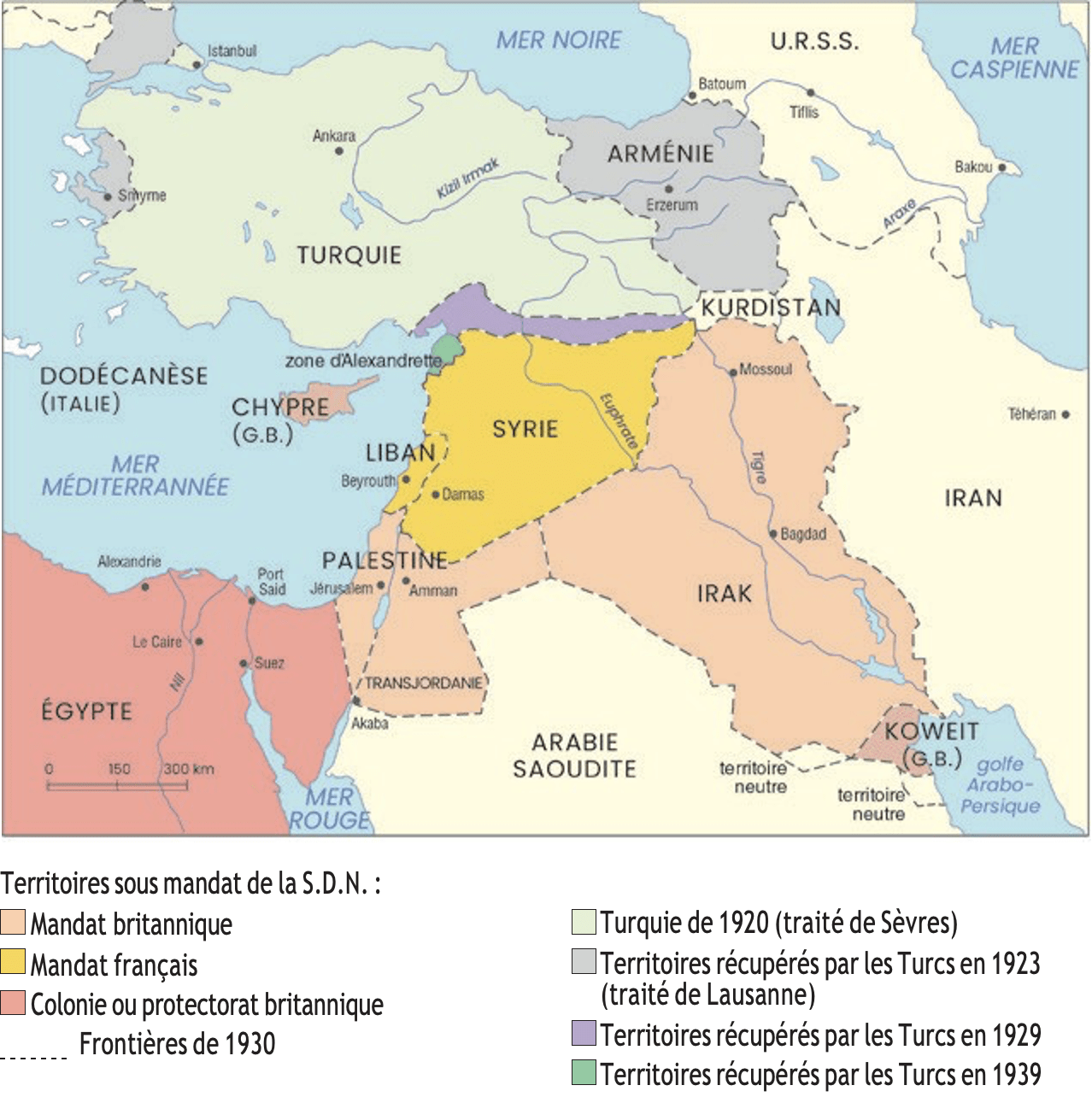 Quand l’Empire ottoman, allié des puissances centrales dans la Grande Guerre, s’effondre fin 1918, ses possessions arabes passent sous la souveraineté du Royaume-Uni et de la France. Décidé dès 1916 par les accords secrets franco-britanniques (dits Sykes-Picot), ce partage est validé par la conférence de San Remo (avril 1920). Il se traduit en juillet 1922 par l’attribution, via la Société des Nations, de deux mandats à la France (Syrie et Liban) et de deux autres au Royaume-Uni (Palestine et Mésopotamie).
