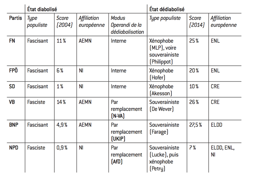 Typologie des partis populistes en Europe (> 1% aux élections)