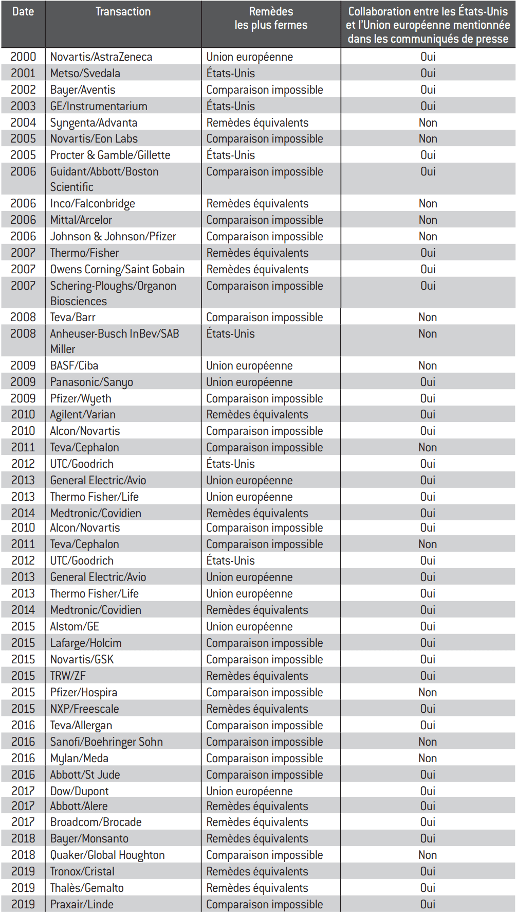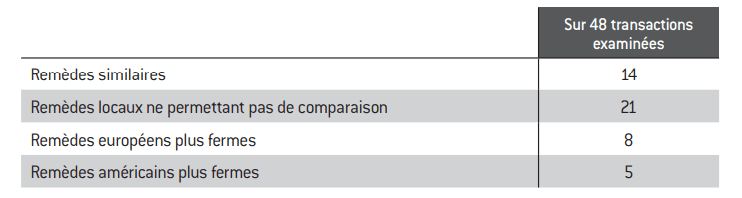 Comparaisons des remèdes imposés aux États-Unis et en Europe dans le cas de concentration ayant fait concomitamment l’objet d’autorisations conditionnelles de part et d’autre de l’Atlantique