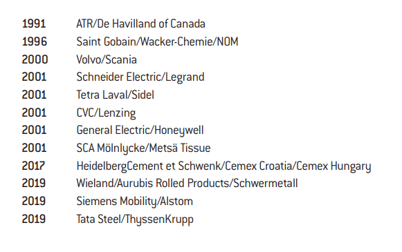 On se référera à l’annexe pour une analyse des cas d’interdiction de la Commission européenne et du devenir des industries concernées.