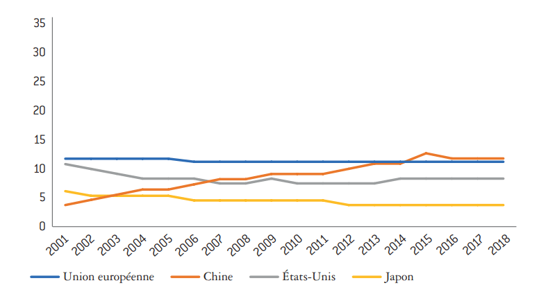 Des règles multilatérales contestées par les États-Unis. En novembre 2016, l’élection de Donald Trump, porté par son agenda « America First », a marqué un tournant à cet égard. Sous sa présidence, les États-Unis ont instauré des barrières tarifaires importantes, notamment sur l’aluminium et l’acier. La compatibilité de ces décisions, basées sur des textes censés protéger la sécurité nationale, avec les accords de l’Organisation mondiale du commerce (OMC) est fortement contestée. Par ailleurs, l’organe de règlement des différends de l’OMC sera paralysé dès la fin de l’année 2019 du fait du refus des États-Unis de nommer des juges au sein de son organe d’appel. Les garde-fous garantissant la bonne application des règles internationales de lutte contre la concurrence déloyale seront alors bloqués.