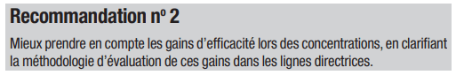 Pour autant, même si le taux d’échec des fusions est en moyenne important, on ne peut faire grief par principe à une entreprise qui souhaite en racheter ou fusionner avec elle de ne pas être en mesure de diminuer les coûts de production grâce à l’opération. À cet égard, une évolution souhaitable consisterait à ce que la Commission européenne clarifie a minima la méthodologie d’analyse des gains d’efficacité, notamment en publiant des lignes directrices sur ce sujet, afin que les entreprises puissent faire valoir au mieux leurs arguments sur ce point. Il est frappant de noter que les lignes directrices sur le contrôle des concentrations restent assez laconiques, seuls quelques paragraphes détaillent les types de gains d’efficacité susceptibles d’être pris en compte36, sans donner de détail d’ordre méthodologique. Cette clarification pourrait se faire à cadre analytique constant : sans remettre en cause l’objectif de maintien du surplus des consommateurs, la Commission européenne pourrait considérer avec davantage d’intérêt les arguments des parties sur les gains d’efficacité.