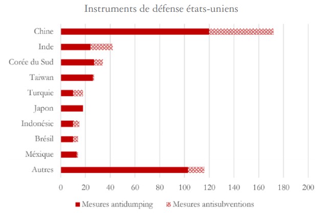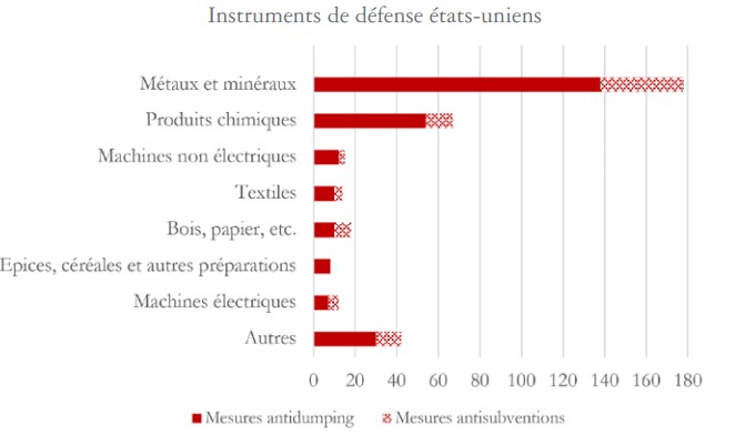 Notons que les principaux tarifs douaniers instaurés par le président Trump ne sont pas des instruments de défense commerciale au sens de l’OMC. Ils ne sont donc pas pris en compte dans les données.