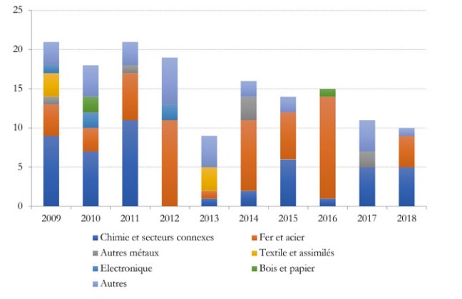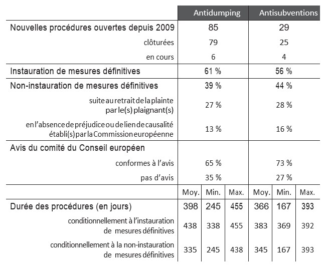 Source : Rapports annuels de la Commission européenne au Conseil européen et au Parlement européen sur les activités antidumping, antisubventions et de sauvegarde de l’Union européenne.