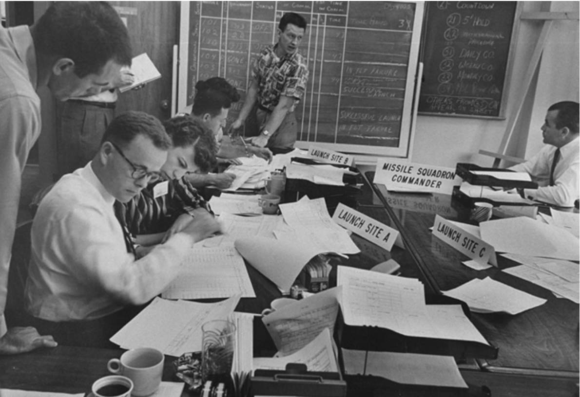 Alain C. Enthoven au tableau lors d’un briefing sur le budget de la SAC (Strategic Air Command) à la Rand Corporation Research Institute Leonard McCombe/The LIFE Picture Collection/Shutterstock
