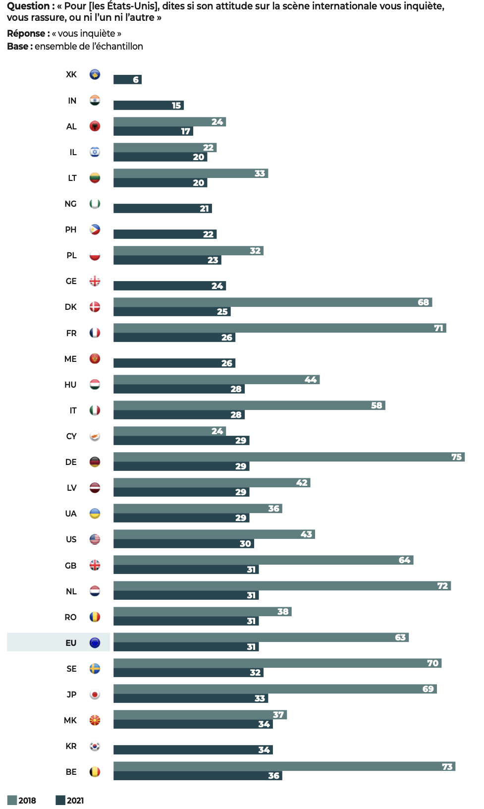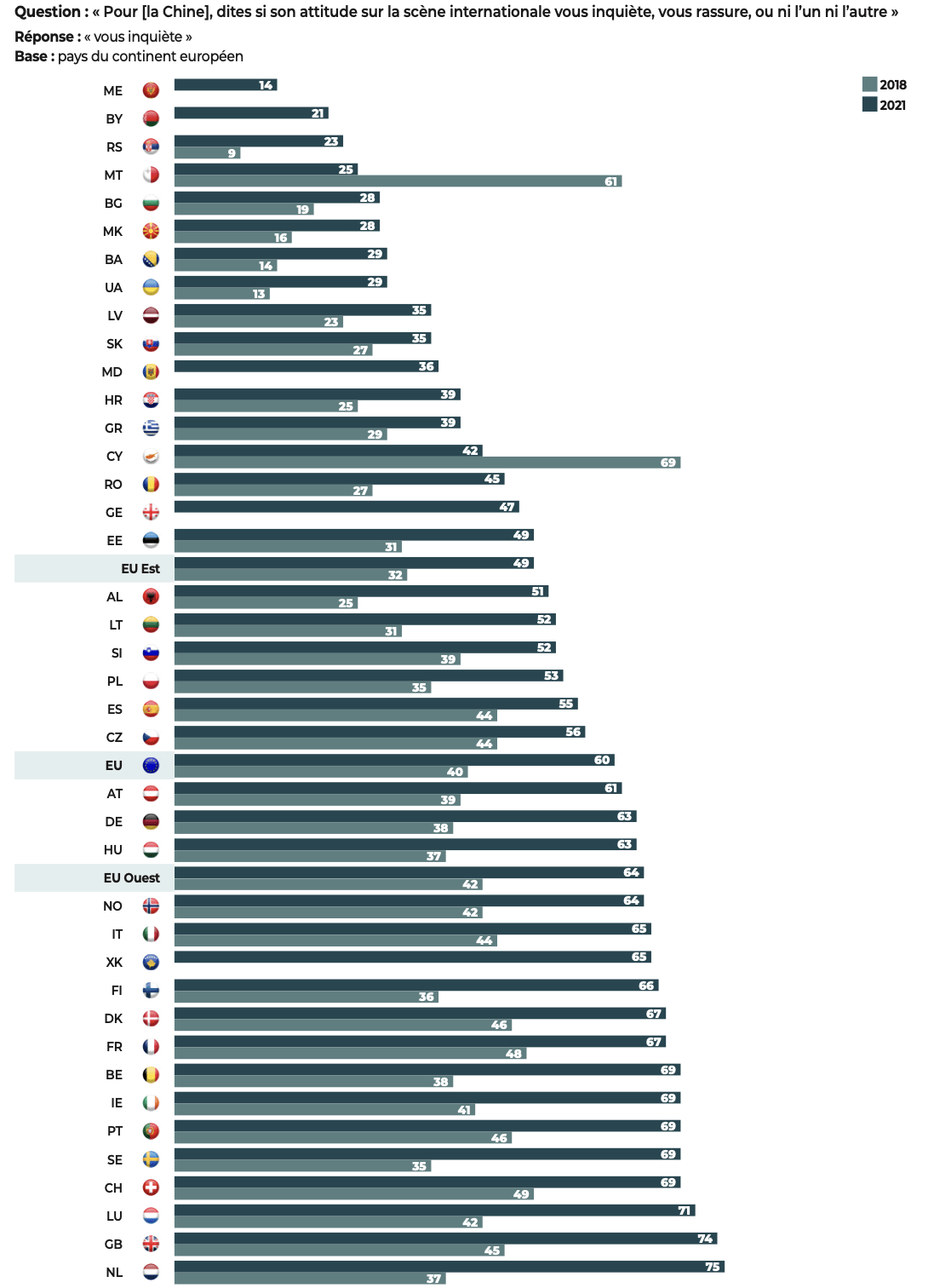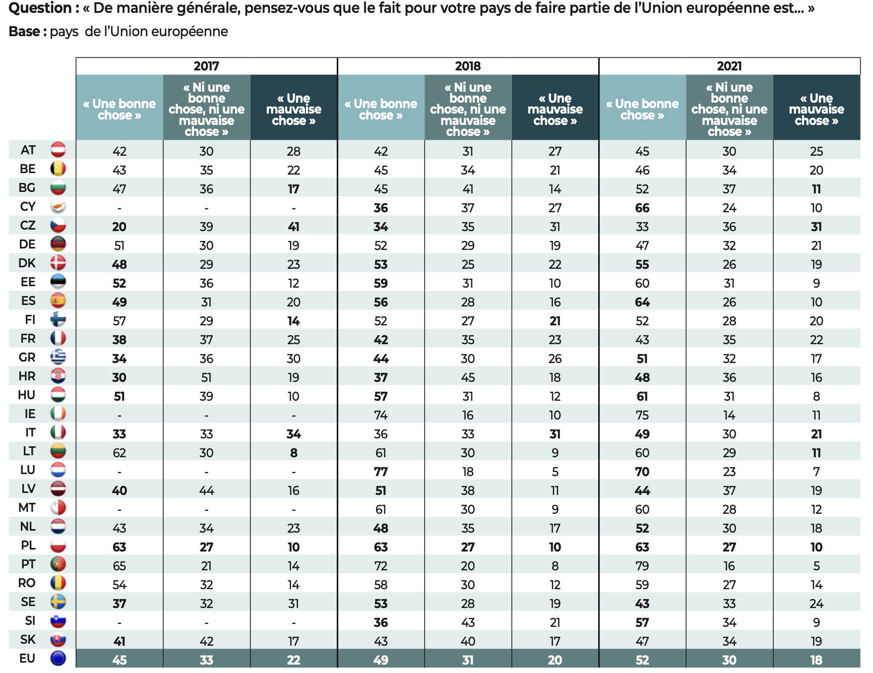 … des divergences perdurent en son sein entre les États membres de l’Ouest et ceux de l’Est (en %)