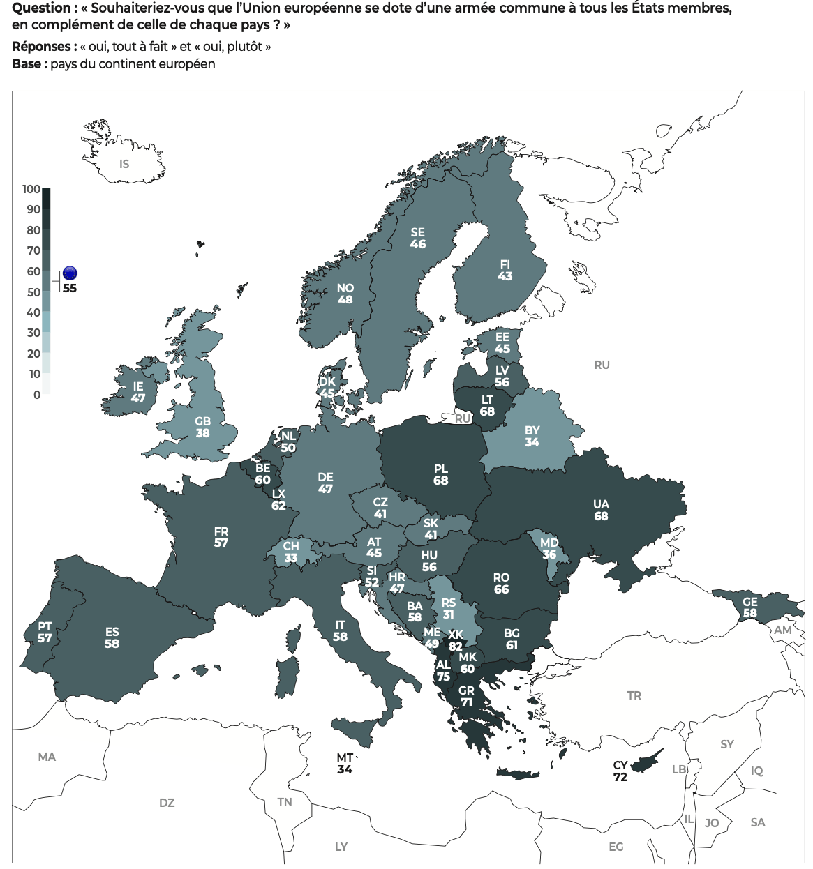 On note que dans les pays de notre étude où l’avortement est accessible sur décision de la femme enceinte, l’hostilité au droit à l’avortement est majoritaire chez les Géorgiens (74%), les Albanais (70%), les Monténégrins (69%), les Kosovars (66%), les Moldaves (61%), les Tunisiens (58%) et les Chypriotes (51%)11.