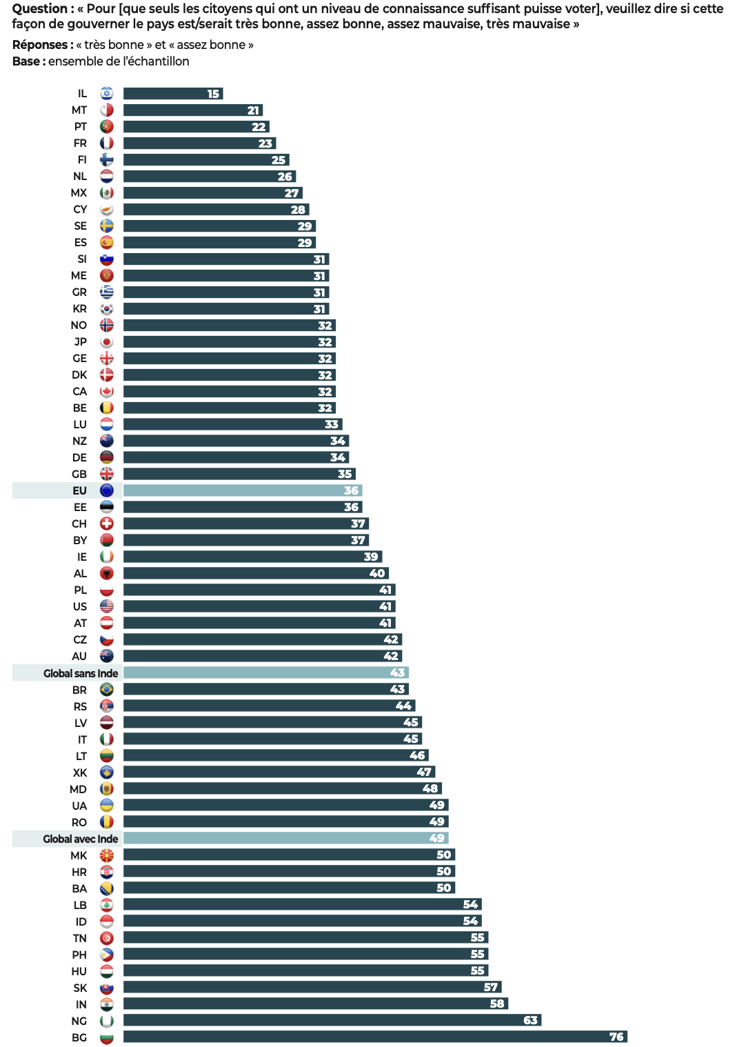 Pour 43% des citoyens, le vote devrait être réservé à ceux qui ont « un niveau de connaissance suffisant » (en %)