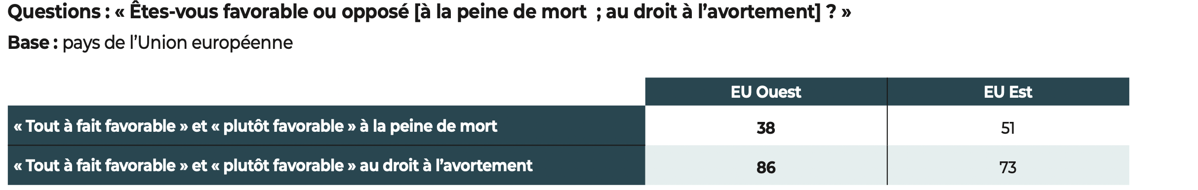 Si l’Union européenne se distingue du reste du monde à propos de la peine de mort et du droit à l’avortement… (en %)