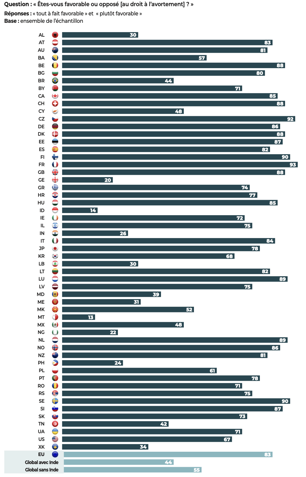 Niveau de soutien au droit à l’avortement (en %)