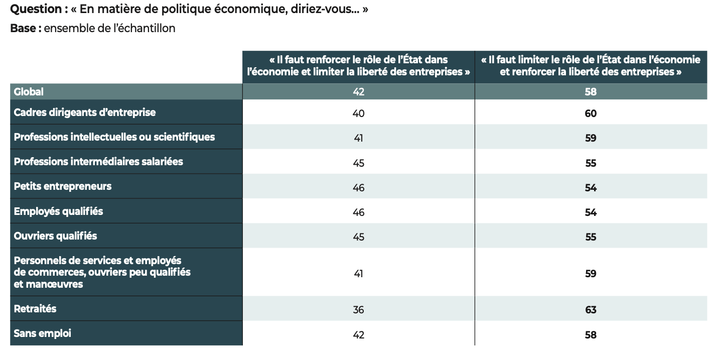 La liberté des entreprises est souhaitée par l’ensemble des catégories socioprofessionnelles (en %)