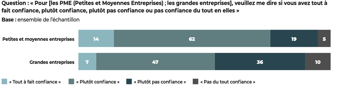 Dans un monde de défiance, les entreprises suscitent encore la confiance (en %)
