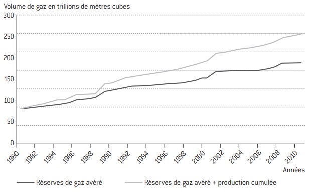 Graphique 2 : Réserves de gaz dans le monde (en trillions de mètres cubes), 1980-2010