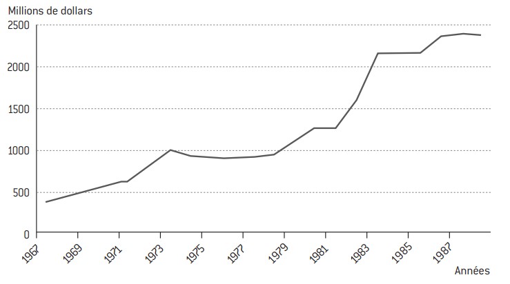 Graphique 3 : Coût instantané des centrales nucléaires ayant une capacité d’1 GW aux États-Unis (en millions de dollars), 1967-1987 (données de 1988)