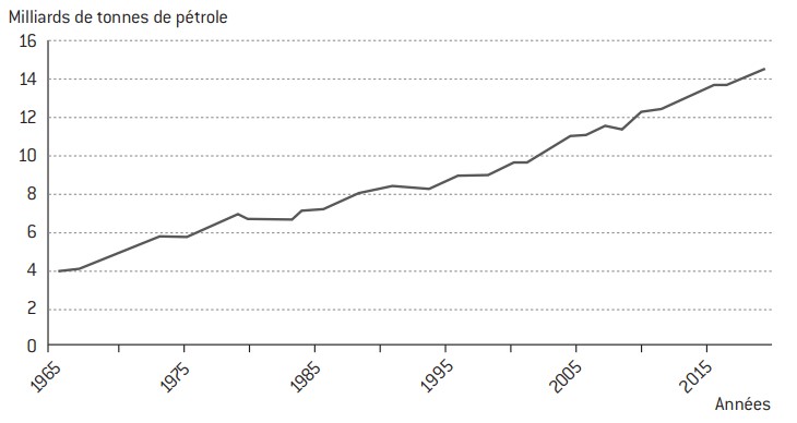Graphique 4 : Consommation d’énergie dans le monde (en milliards de tonnes de pétrole), 1965-2010