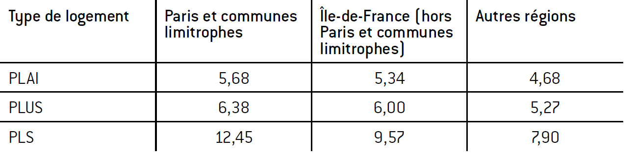 Tableau 2 : Loyer maximum des logements conventionnés (prix/m²/mois, en euros)
