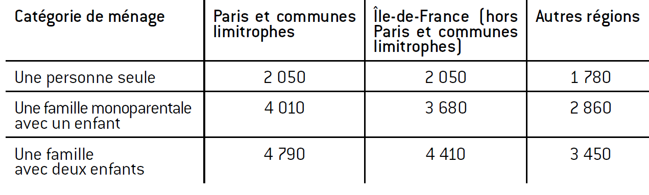 Tableau 1 : plafonds de ressources en revenus mensuels nets (plus 2011) En euros