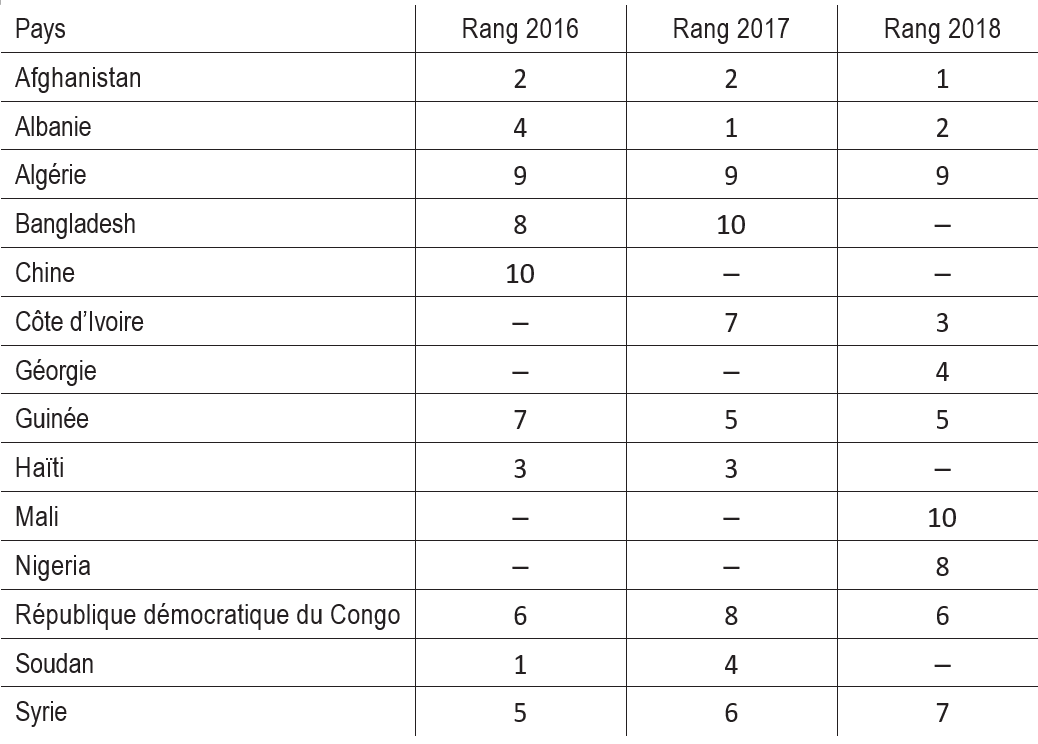 Classement des principaux pays d’origine des demandeurs d’asile en France.