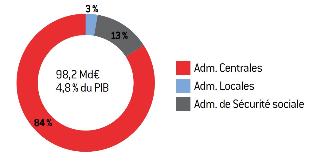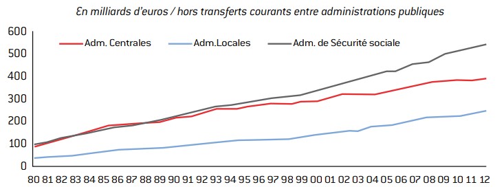 En 2012, le déficit public s’est établi à 4,8 % du PIB. C’est certes moins qu’en 2011 (5,3 % du PIB), mais il s’agit toujours d’un niveau de déficit élevé. Dans ce contexte, l’assainissement budgétaire est un impératif auquel seront soumises les trois administrations publiques (État, collectivités locales et Sécurité sociale) encore plusieurs années. Le gouvernement table sur un déficit réduit à 0,7 % du PIB en 20172 (avec un solde structurel positif à 0,5 % du PIB). La plupart des analyses des économistes affichent cependant des perspectives moins favorables.