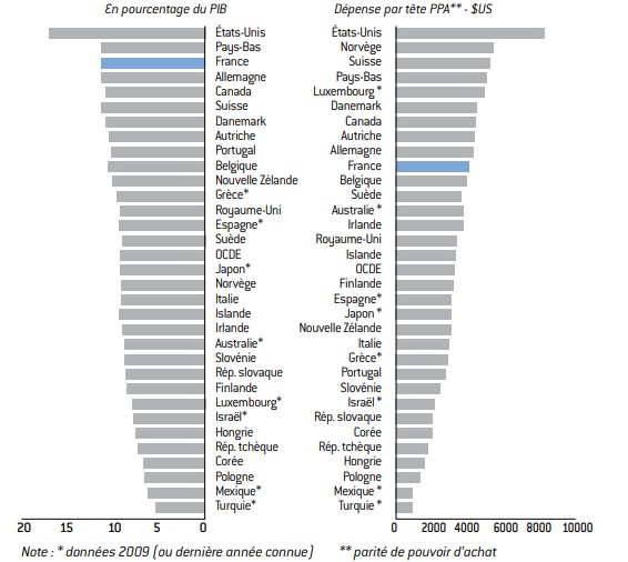 La France est l’un des pays développés où la prise en charge de la santé par les fonds publics est la plus forte. En France, le secteur public supporte 76,8 % des dépenses de santé, ce qui rend d’autant plus nécessaire leur régulation.