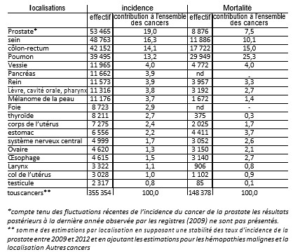iNca, La Situation du cancer en France en 2012, « état des lieux & des connaissances », 2013, p. 29.