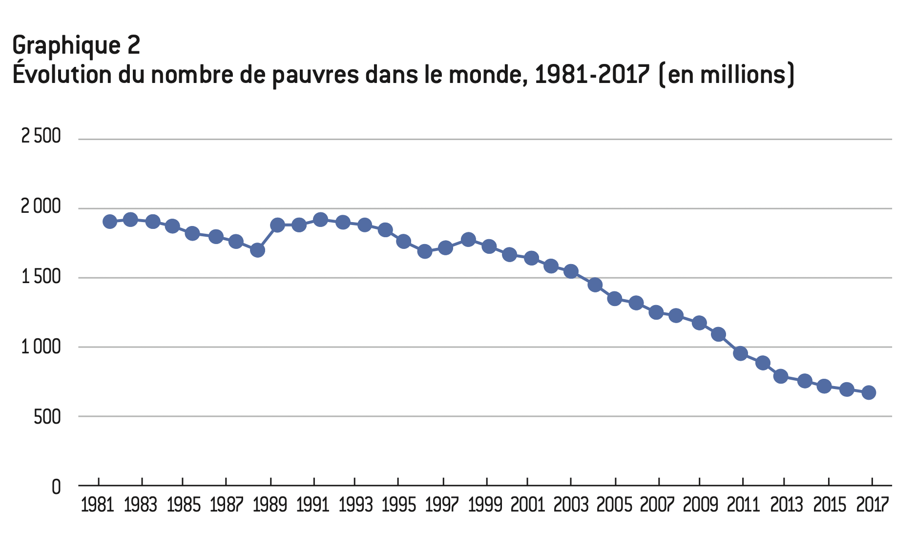 Évolution du nombre de pauvres dans le monde, 1981-2017 (en millions)
