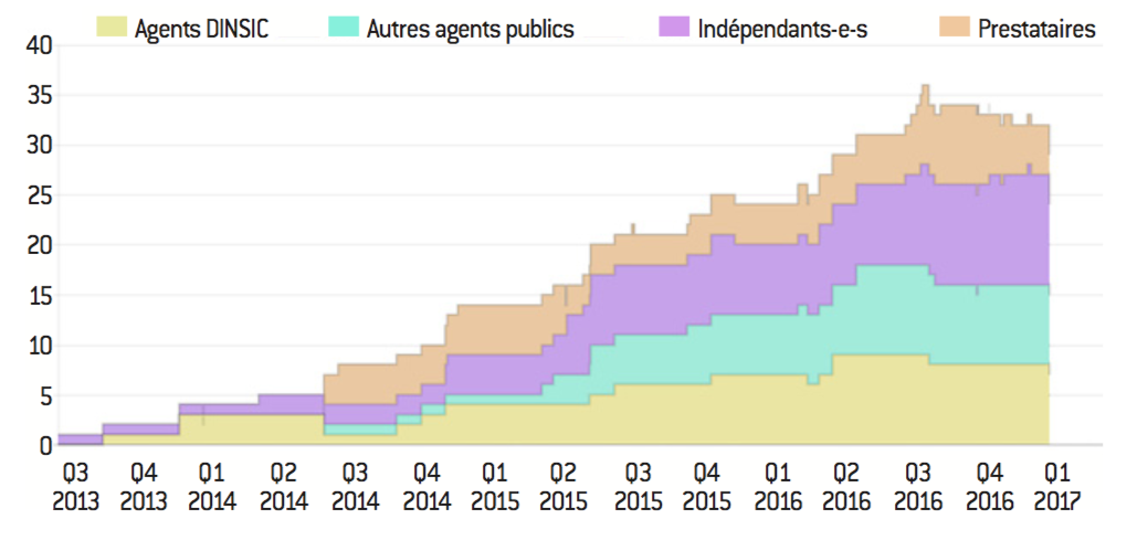 Ce processus global prend entre dix-huit et trente-six mois après le lancement. La masse critique d’une dizaine de personnes atteinte par l’équipe startup permet alors de préserver le fonctionnement qu’elle a construit pour répondre aux contraintes au sein de la structure hôte, révélant une possibilité nouvelle d’organisation pour les administrations.